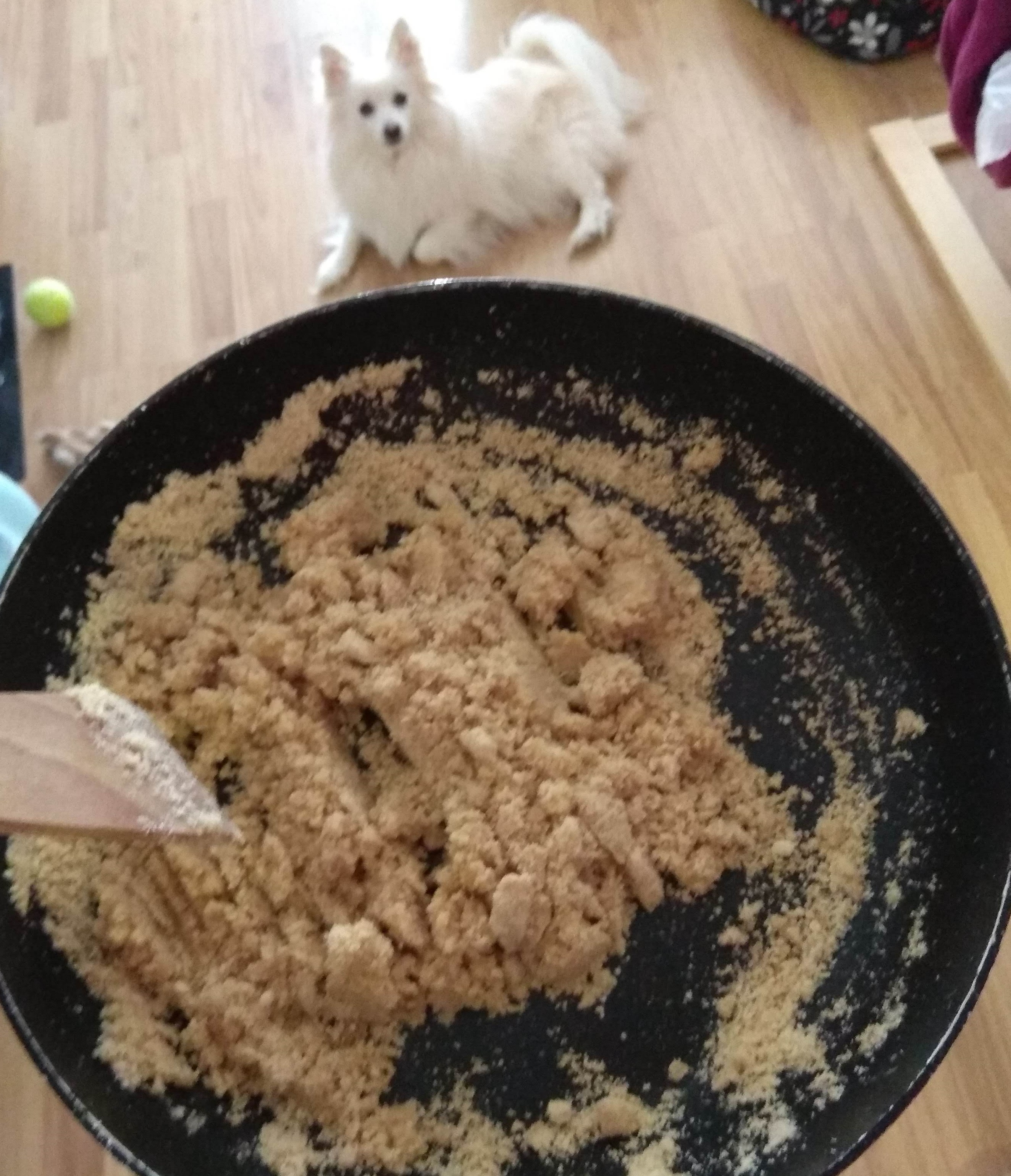 Yep, you read it correct, the first and most important step in this cake is to gently toast the flour, so that it gives that extra flavor in the end product, but be careful, it might burn fast!