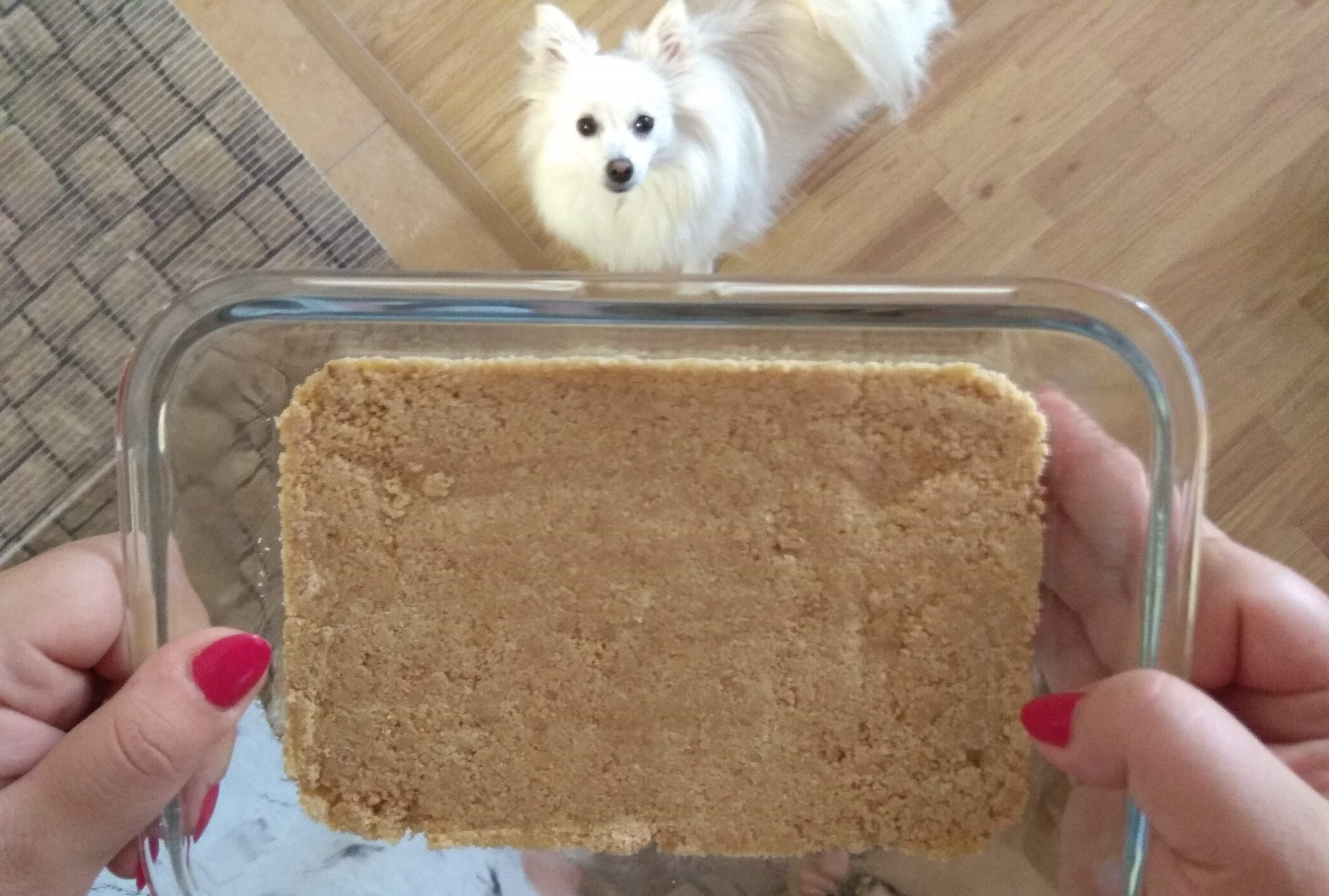 In a pan gently toast the almond flour, being careful not to burn it. When it will be getting darker, add the sweetener and mix well, then the melted butter. Mix until well combined, then transfer the dough in a tray with high sides and press firmly until the base looks compact. Let it rest in the freezer for at least 20 minutes.
